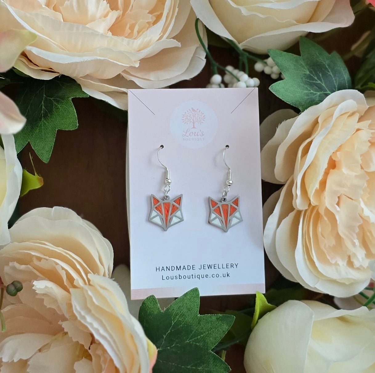 Handmade stainless steel red fox earrings and 18 inch necklace. you can choose from either the earrings or necklace or the set.