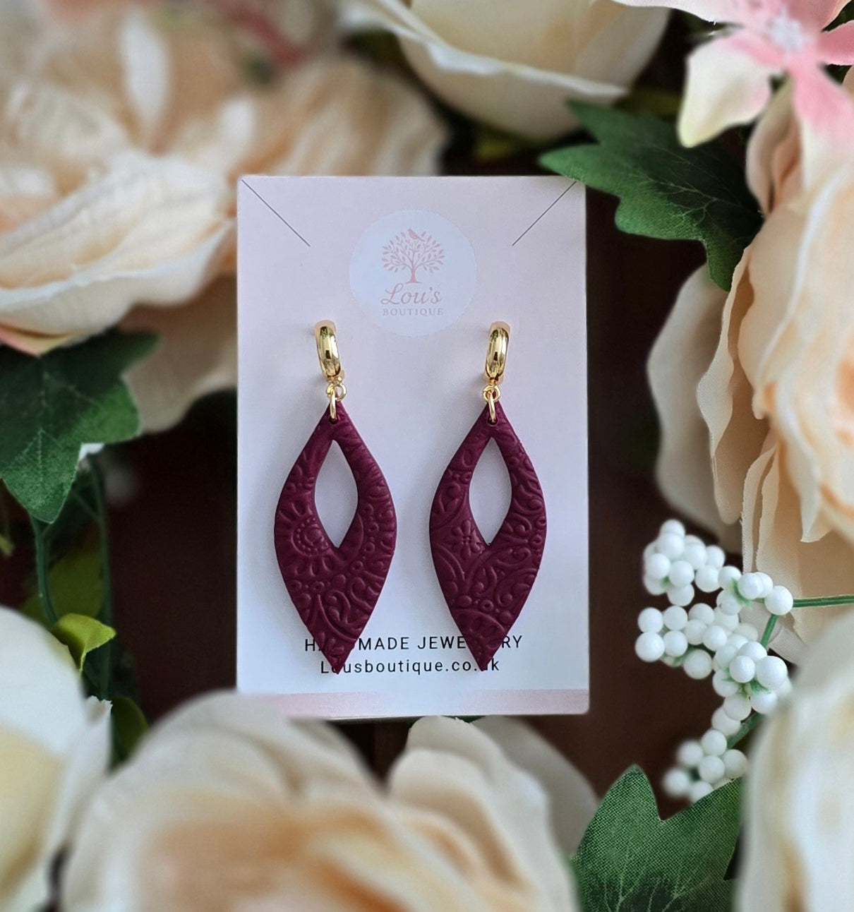 Handmade with love, these gorgeous paisley inspired textured dangle drop earrings created in the finest polymer clay earrings.